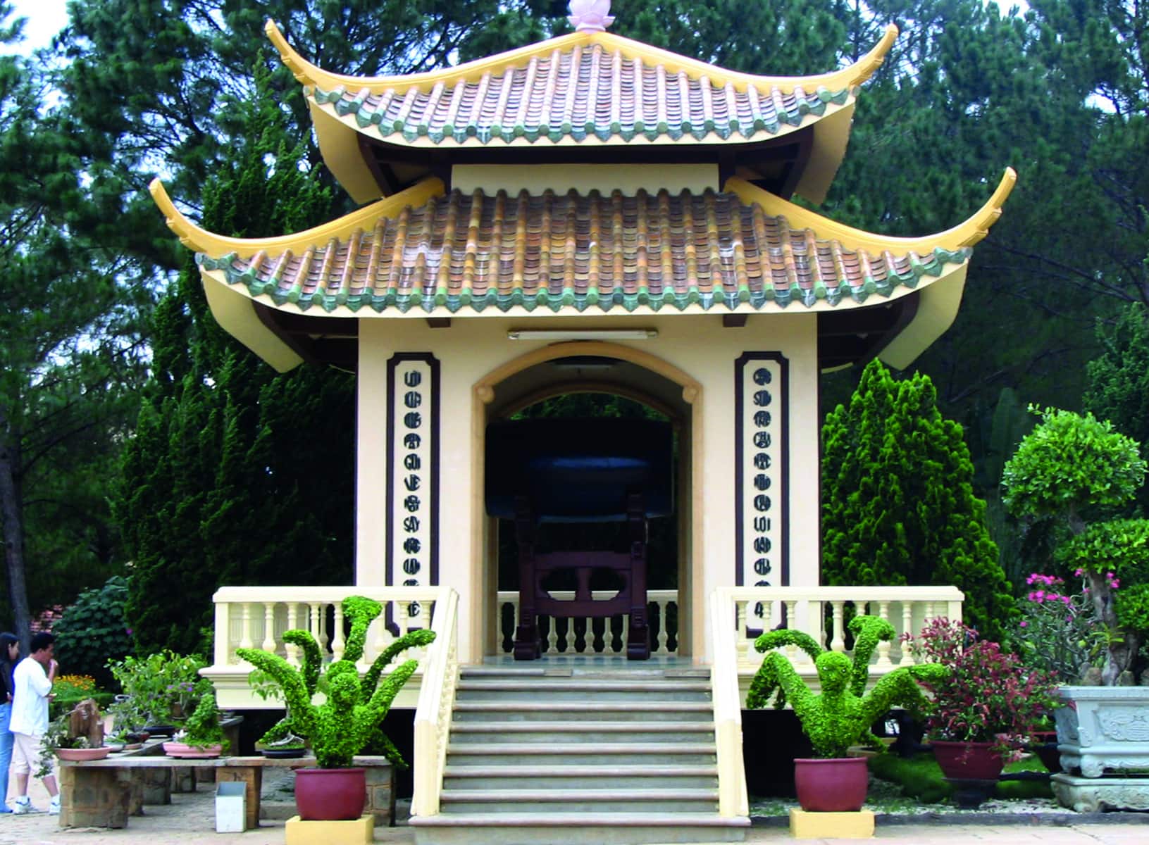 Acht Kilometer außerhalb Dalats gelegen, besticht die Linh Phuoc Pagode durch ihre über und über mit Mosaiksteinchen verzierten Oberflächen. Der 49 Meter lange Drachenkopf am Eingangstor wurde minutiös aus Scherben von 12.000 Glasflaschen zusammengesetzt. Ihm verdankt der buddhistische Schrein seinen Beinamen „Pagode des zerbrochenen Glases“. Auch die Urlaubsresidenz des letzten Kaisers, Bao Dais Sommerpalast Lam Ty Ni, ist einen Besuch wert.