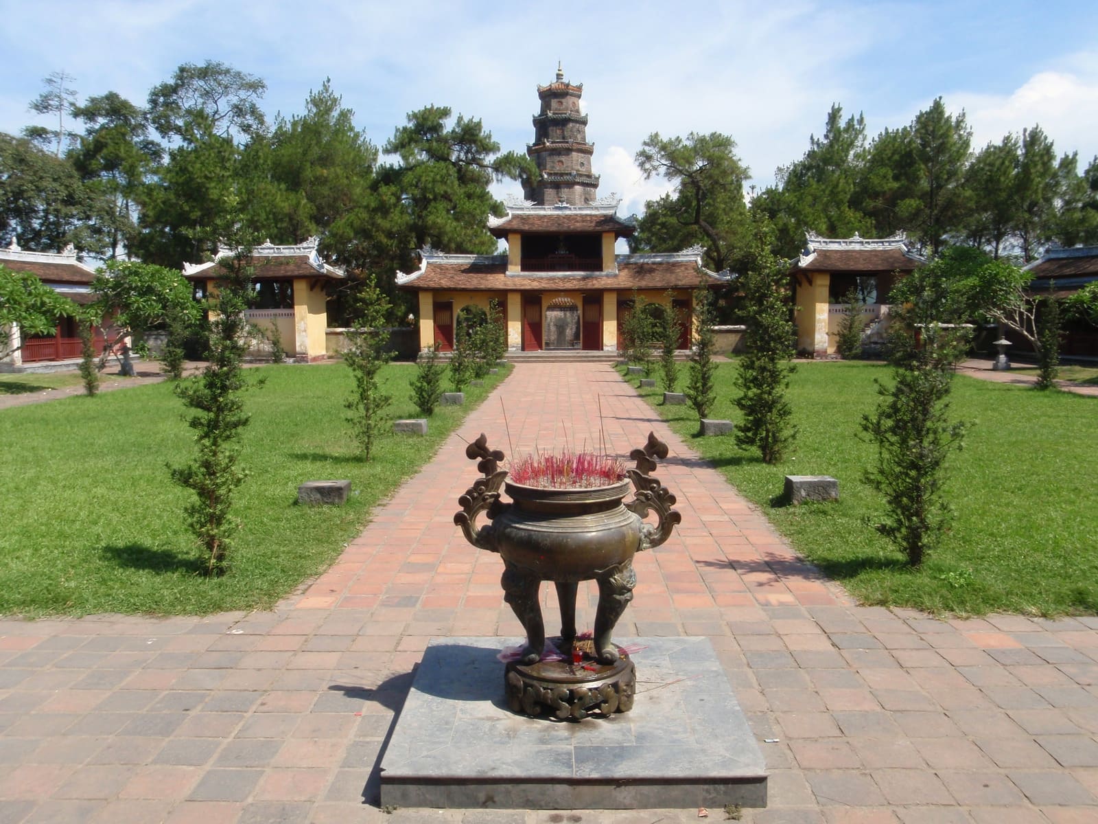Geografisch gesehen liegt Hue direkt am Parfümfluss – dem Huong Giang, auch Fluss der Wohlgerüche genannt. Die Uferpromenade des großen Flusses, der seinen Namen vermutlich durch die Pollen, die im Frühjahr auf dem Wasser treiben, erhielt, lädt zu einem ausgiebigen Spaziergang ein. Hierbei lohnt sich auch ein Besuch der schön angelegten Thien Mu Pagode am Südufer des Flusses. Ausklingen sollte man den eindrucksvollen Tag in Hue auf dem täglich stattfindenden Nguyen Dinh Chieu Nachtmarkt, auf dem man sich mit allerlei Souvenirs, Lampen und leckerem Streetfood eindecken kann.